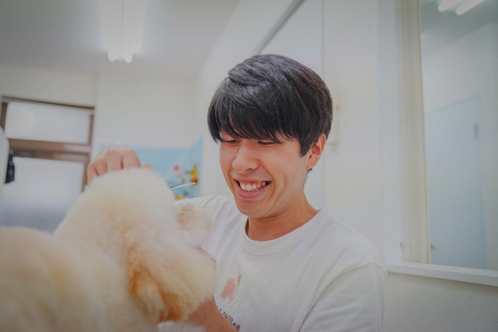 トリミング前には一緒に遊んでコミュニケーションを取ることを大切にしています。